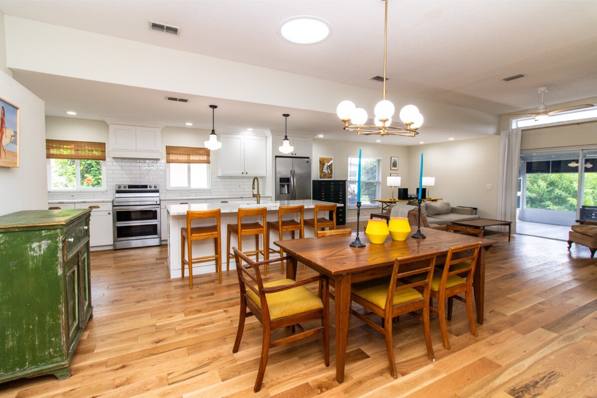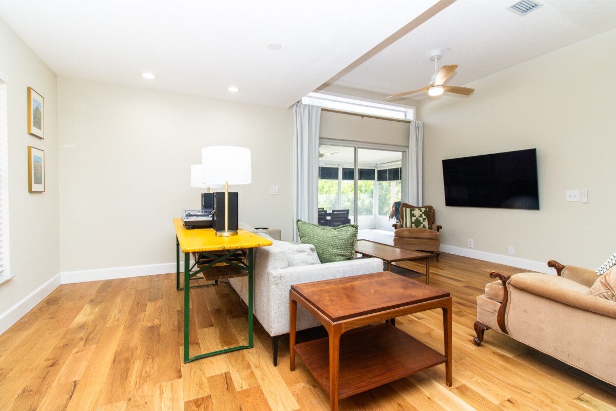 Welcome to 1327 Wayne Avenue, located in desirable Flood Zone X and beautifully renovated with high-end upgrades throughout. This charming home boasts a fully remodeled **Primary Bathroom (2025)** featuring a solid wood vanity, marble shower floor, terrazzo tile, zero-entry shower, and heated towel bar. The **Family Bathroom (2024)** includes a new solid wood vanity, Kohler deep soaking tub, and elegant finishes. In **2023**, the home saw major improvements: a new roof, new HVAC, fresh interior paint, upgraded kitchen cabinets, and stunning ¾” white oak hardwood floors throughout. The kitchen includes a Samsung stainless steel double oven range, KitchenAid three-row dishwasher, and LG washer/dryer with steam fresh technology. Updated built-in closets, all new remote-controlled ceiling fans, and upgraded exterior lighting complete the picture. Enjoy the solitude and serene views from your fully screened Florida room and during those cool fall and winter evenings relax by the custom fire pit and grill on the outdoor pavered patio. See attached list of comprehensive owner improvements. Be sure to view our video tour of this beautiful property and to schedule your showing today with your LOCAL Realtor.** HOME IS IN FLOOD ZONE X, the estuary which is contiguous to the property is in flood zone AE. Seller's mortgage company does not require flood insurance.