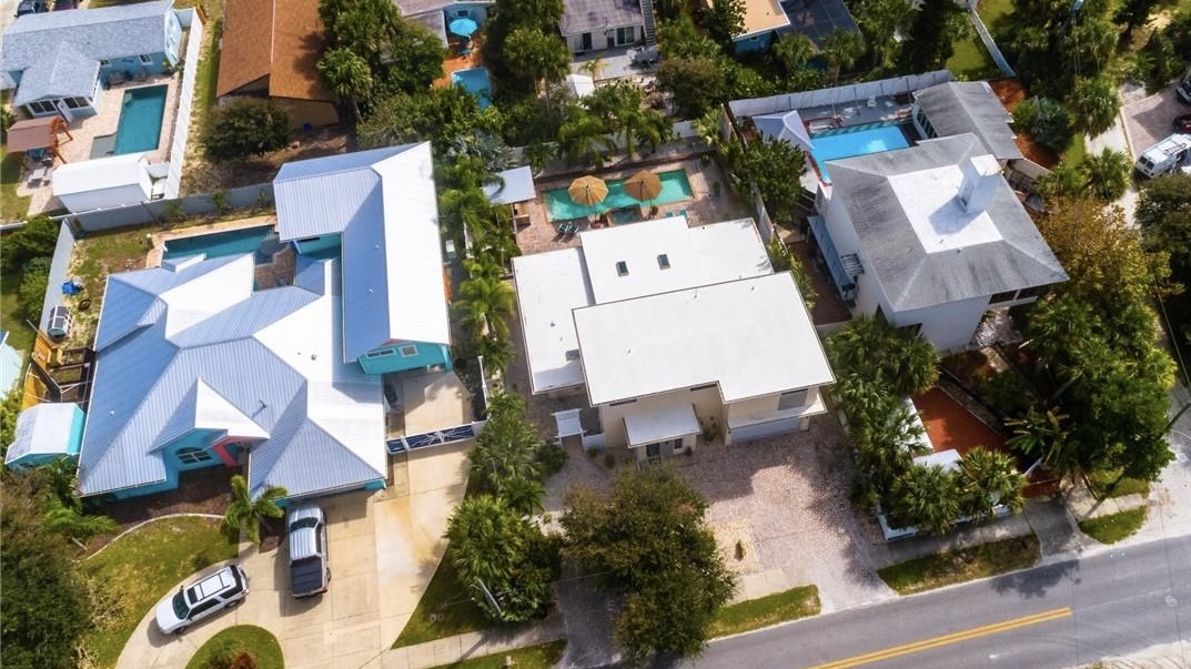 Welcome to North Beach… where this modern stunner proves you really can have it all—style, space, and sweet, sweet privacy. 🌴🤍 Tucked behind fencing, lush palms, and a grand live oak (aka nature’s privacy screen), this contemporary pool home feels like your own secluded resort—without giving up a prime Peninsula Avenue address.