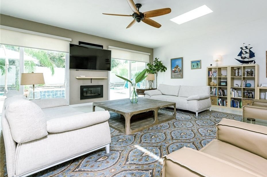 Indoor/outdoor living? Nailed it. Two oversized sliders open the living room straight to the pool deck for seamless flow and maximum “wow.” Add natural gas for the fireplace, grill, and pool heater, plus smart Lutron lighting you can control with your voice (because getting up is overrated).