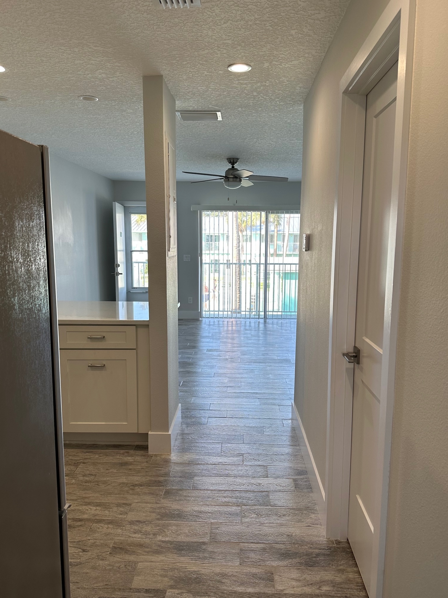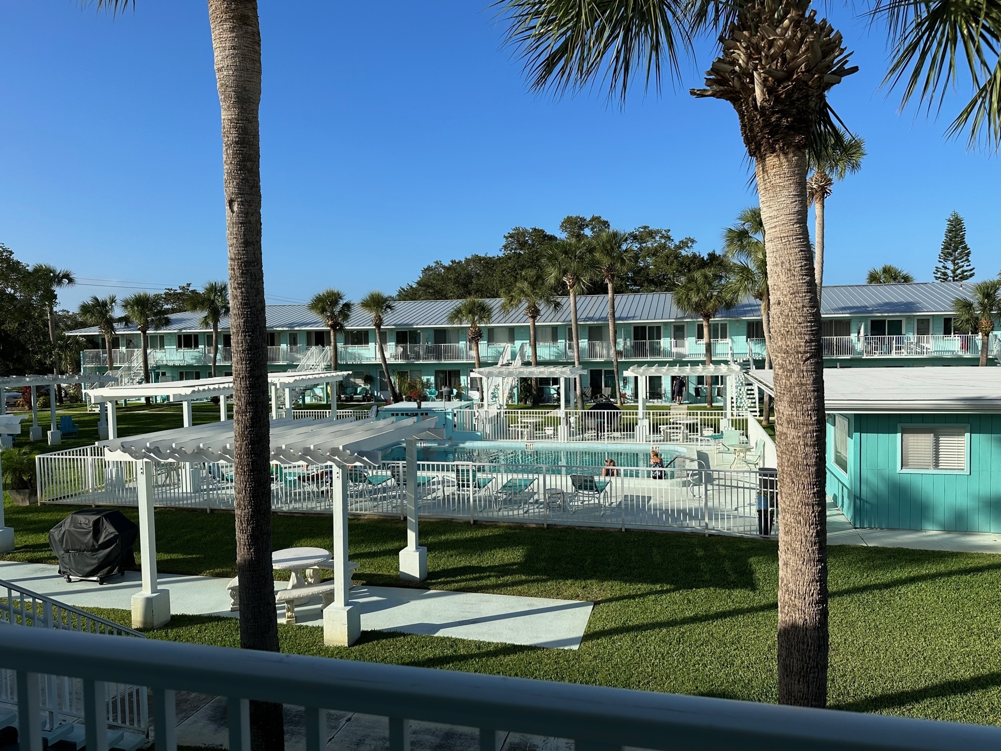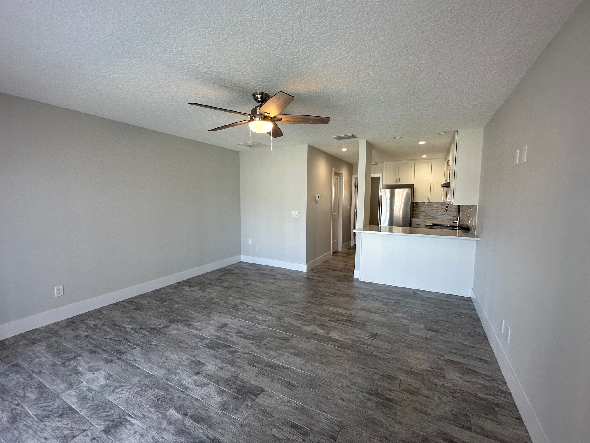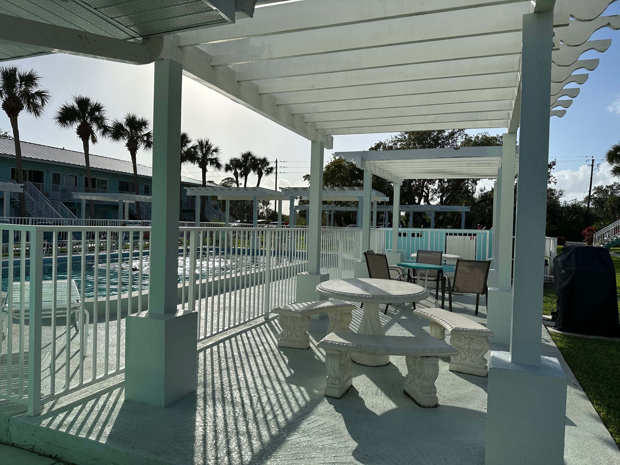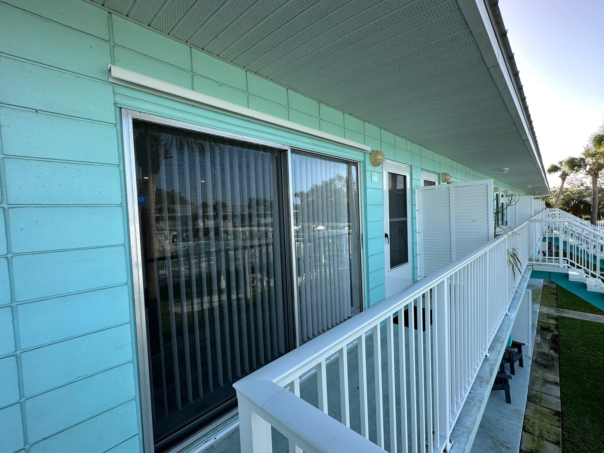 Check out this beautiful modern 1 bedroom 1 bath unit located on the 2nd floor of Coronado Arms Condo Complex. This unit features an open floor plan, wood tile floor throughout, breakfast bar, and a beautiful view of the pool from the living room and front balcony. It comes with one assigned parking spot. Two Community Coin operated laundry rooms available in the complex. Enjoy the community pool and clubhouse. Community grills located by the pool for easy grilling. LOCATION LOCATION LOCATION! Come live the NSB Lifestyle in the heart of the town, you can walk to the beach, local restaurants, shops, and Flagler Ave.